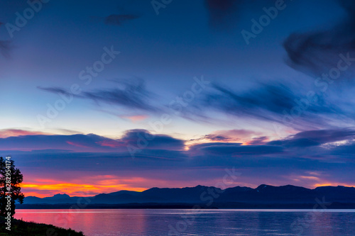 © Mark, Fototapeta premium Sunrise Above the Lake with Silhouetted Mountains