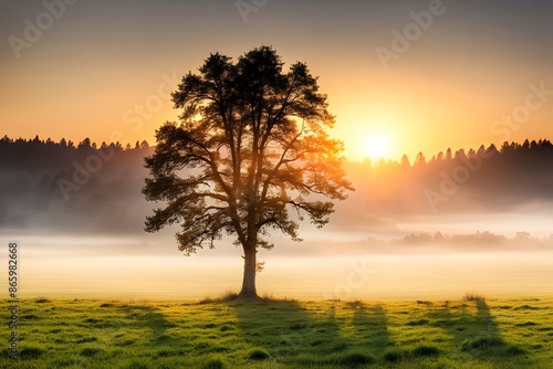 © dineth, Fototapeta premium sunrise and alone tree in a land 4k desktop wallpaper