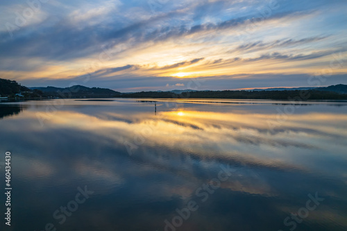 © Merrillie, Fototapeta premium Sunrise and cloud reflections waterscape