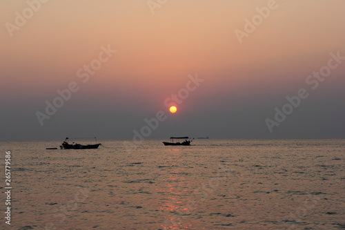 Obraz premium Sunrise and sunset on the sea and boat.