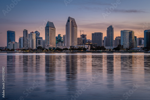 Obraz premium Sunrise and the San Diego skyline from Coronado Island