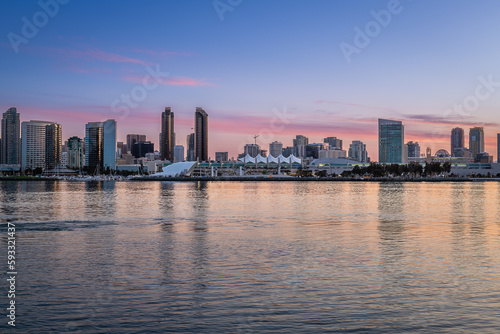 Obraz premium Sunrise and the San Diego skyline from Coronado Island