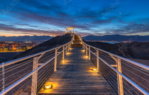 Obraz premium Sunrise at a top of the mount in vicinity of Eilat - famous tourist resort city in Israel