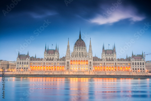 © jon_chica, Naklejka premium sunrise at budapest parliament, hungary