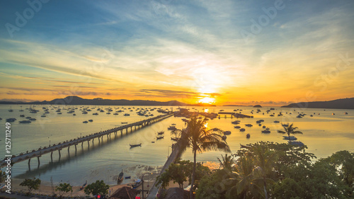© Narong Niemhom, Obraz premium sunrise at Chalong pier