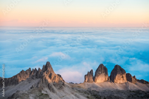 © runruna, Fototapeta premium sunrise at sunset in the italian dolomites. beautiful nature landscape.