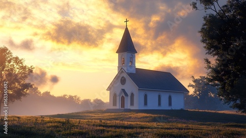 © Infinity, Fototapeta premium Sunrise at the Country Church: A Peaceful Landscape