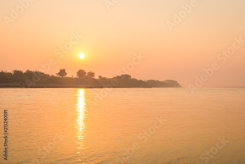© songdech17, Naklejka premium sunrise at the Mekong River landscape