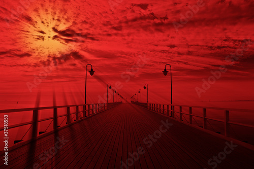 © Nightman1965, Fototapeta premium Sunrise at the pier in Orlowo, Poland.