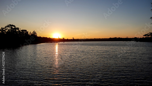 © patana, Naklejka premium Sunrise at the pond on the top of mountain in Thailand