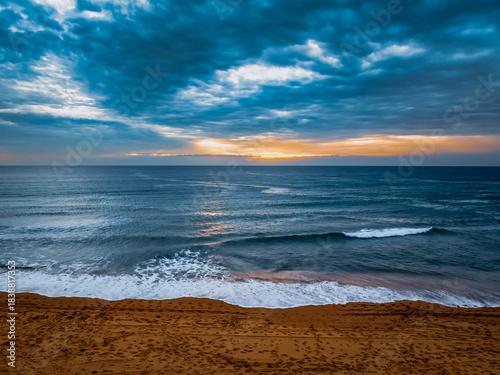 © Merrillie, Fototapeta premium Sunrise at the Seaside with rain clouds