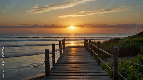 Obraz premium Sunrise Beach Walkway