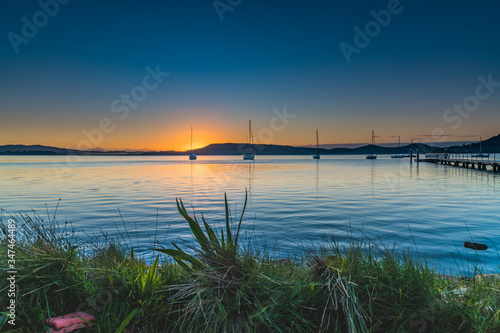 © Merrillie, Obraz premium Sunrise, boats and a clear sky over the Bay