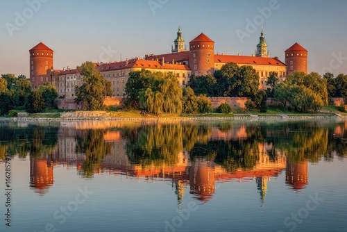 Fototapeta premium Sunrise castle reflection on calm water