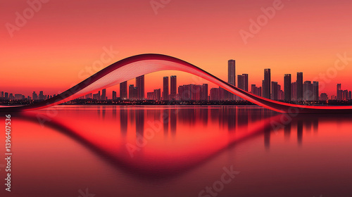 © Muhammad, Obraz premium Sunrise City Bridge Reflection