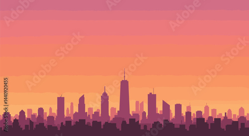 Fototapeta premium Sunrise City Skyline Minimalist Vector Illustration