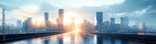 © Thanyana, Fototapeta premium Sunrise city skyline panorama