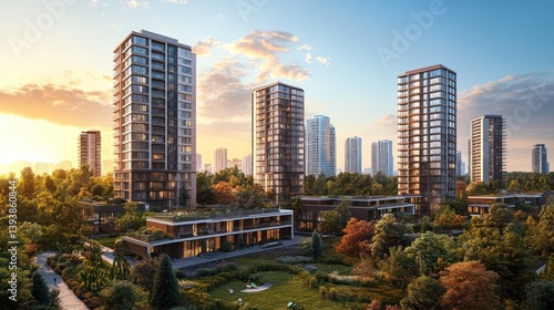 Obraz premium Sunrise Cityscape Luxury Apartments, Park