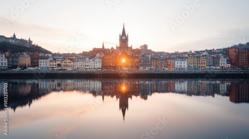 © danadesa, Obraz premium Sunrise cityscape reflection over river