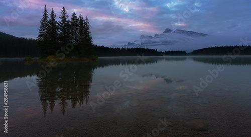 Obraz premium Sunrise Color on Mount Rundle at Two Jack Lake Banff, Canada