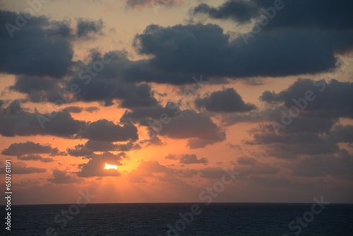 Naklejka premium Sunrise Costa Maya, Yucatan Peninsula, Mexico, Caribbean Sea, on cruise ship...
