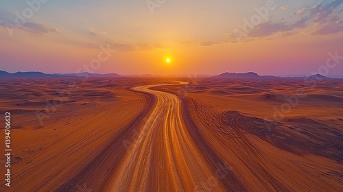 © SAQUEEN, Fototapeta premium Sunrise desert road