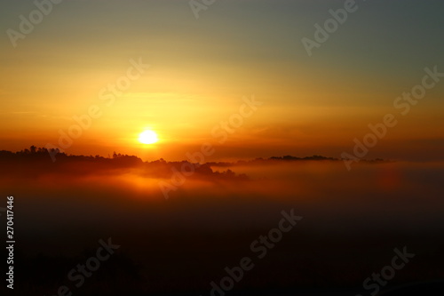 © Ted, Fototapeta premium Sunrise, fog and hills
