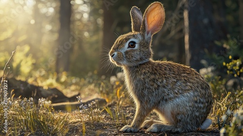 © bulegendut, Fototapeta premium Sunrise forest bunny.