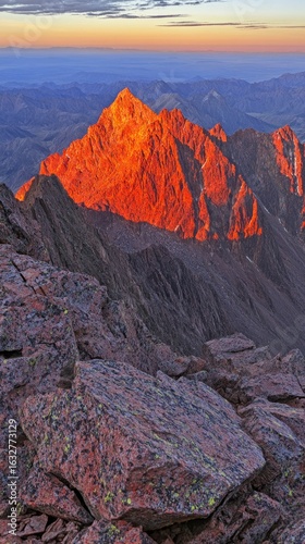 © embun, Obraz premium Sunrise illuminates a mountain peak.