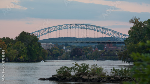 © kmlPhoto, Obraz premium Sunrise image of the Arrigoni Bridge in Middletown, CT