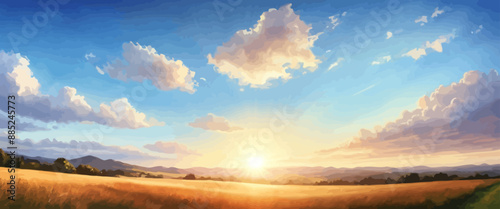 © NguyenThi, Fototapeta premium Sunrise in a Field of Tall Grass