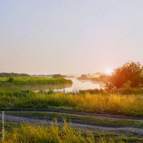 © pro2audio, Obraz premium Sunrise in a light fog on a small river