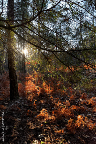 © hassan bensliman, Obraz premium Sunrise in Fontainebleau forest.