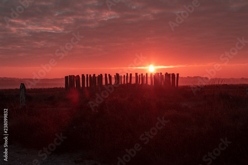 © Dennis, Obraz premium sunrise in national park regte heide - at an ancient grave