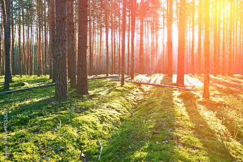 Obraz premium Sunrise in pine forest