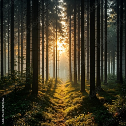 © Bushra, Fototapeta premium sunrise in the forest