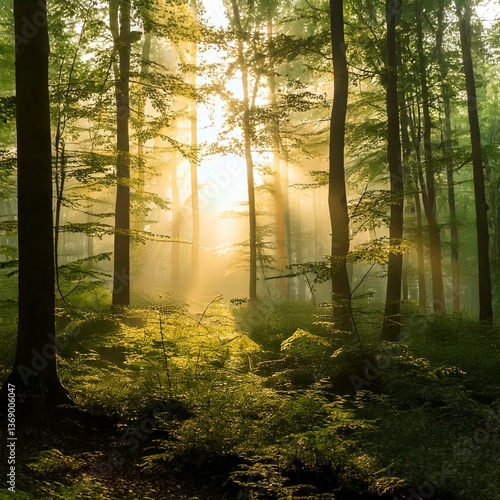 © NANNIE TWITTY, Obraz premium sunrise in the forest