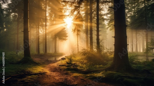 Naklejka premium sunrise in the forest