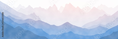 © Valerii, Naklejka premium Sunrise in the mountains, mountain ranges in the morning haze, panoramic view, vector illustration