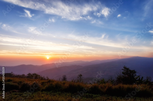 Obraz premium Sunrise landscape view from phu lom lo hill, Phetchabun province