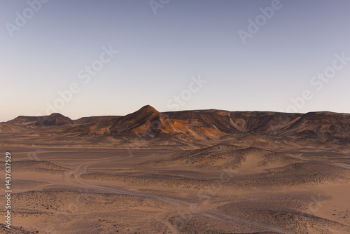 © Stefano, Naklejka premium Sunrise lights on the black desert in Egypt
