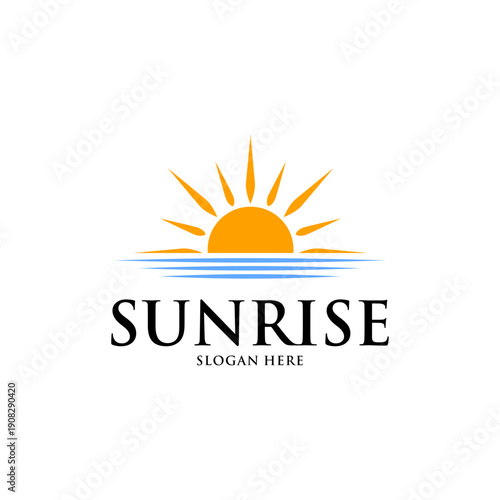 Fototapeta premium sunrise logo design featuring sun rising above horizon