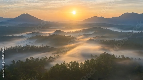 © Mr, Fototapeta premium Sunrise Misty Mountain Landscape Aerial View