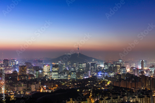 Obraz premium Sunrise morning at Seoul South Korea City Skyline with seoul tower.