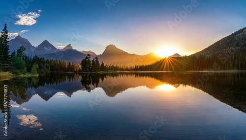 © Aleah, Fototapeta premium sunrise mountain lake reflection