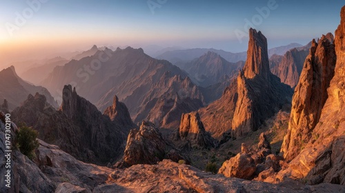 © Aulia, Fototapeta premium Sunrise mountain peaks