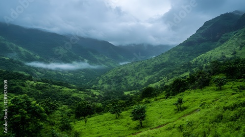 © Fabian Mohr, Fototapeta premium sunrise mountain range with mist rolling over the landscape