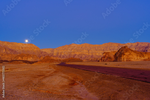 Fototapeta premium Sunrise of rock formations, and the moon, Timna desert park
