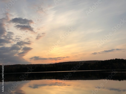 © MarieClaude, Fototapeta premium Sunrise on a lake landscape