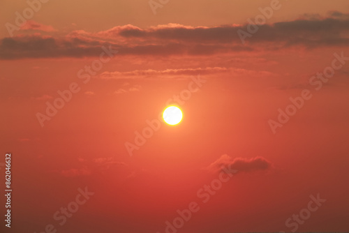Obraz premium Sunrise on a sunny day with orange sky clouds
